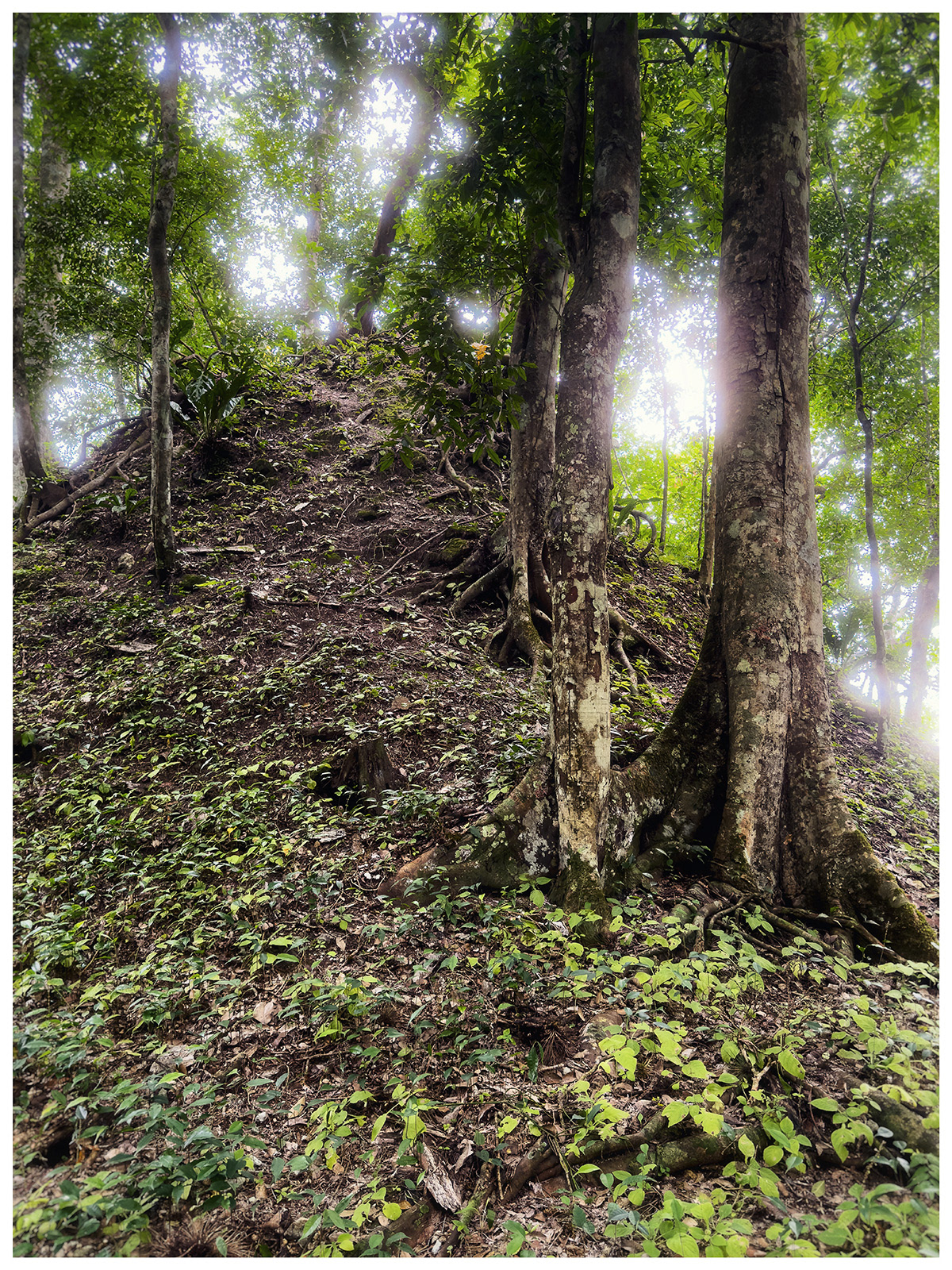 Twin pyramid complexes were built as stages for rituals in great cities in the Peten Basin of Guatemala to celebrate the end of the 20 year ritual period. Today the complexes have been reclaimed the jungle, must still undiscovered under mother's natures growth, another sign of the passing of time.